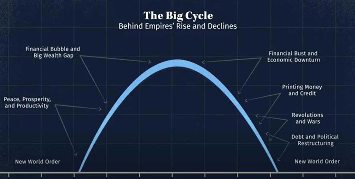 The above chart shows the cycle by which a country passes from emerging as a dominant global force to eventually ceding power to a new leader.