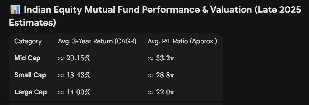 Higher return in Small and Mid cap lead to higher PE in the last 3 years. All