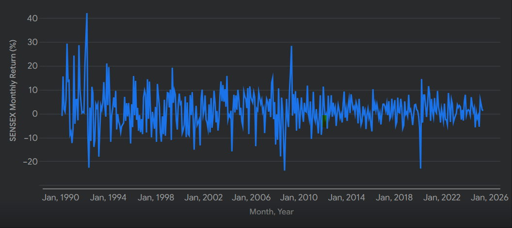 October, 2023 (Israel-Hamas Conflict): SENSEX experienced a negative return.